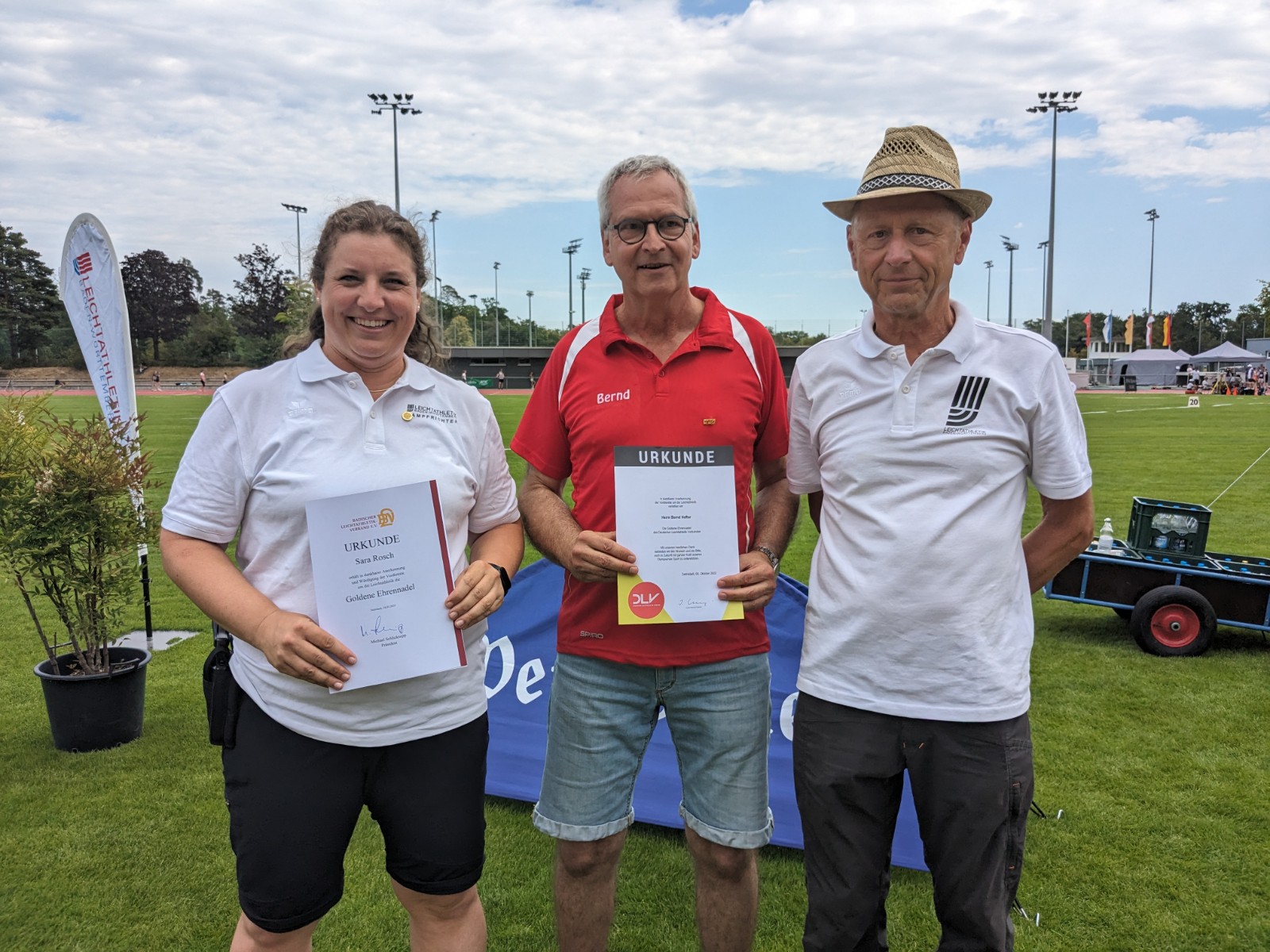 Für ihre langjährigen Verdienste in der Leichtathletik wurden zudem Bernd Hefter und Georg Zwirner mit der goldenen DLV-Ehrennadel geehrt. Bernd Hefter engagiert sich seit vielen Jahren als Stadionsprecher im BLV sowie im SCL Heel Baden-Baden. Georg Zwirner bringt sich als Fachwart Schulsport in die Schülermentorenausbildung sowie als Verbandstrainer Mehrkampf in die Verbandsarbeit ein und ist zudem als Trainer in der LG Region Karlsruhe engagiert.
