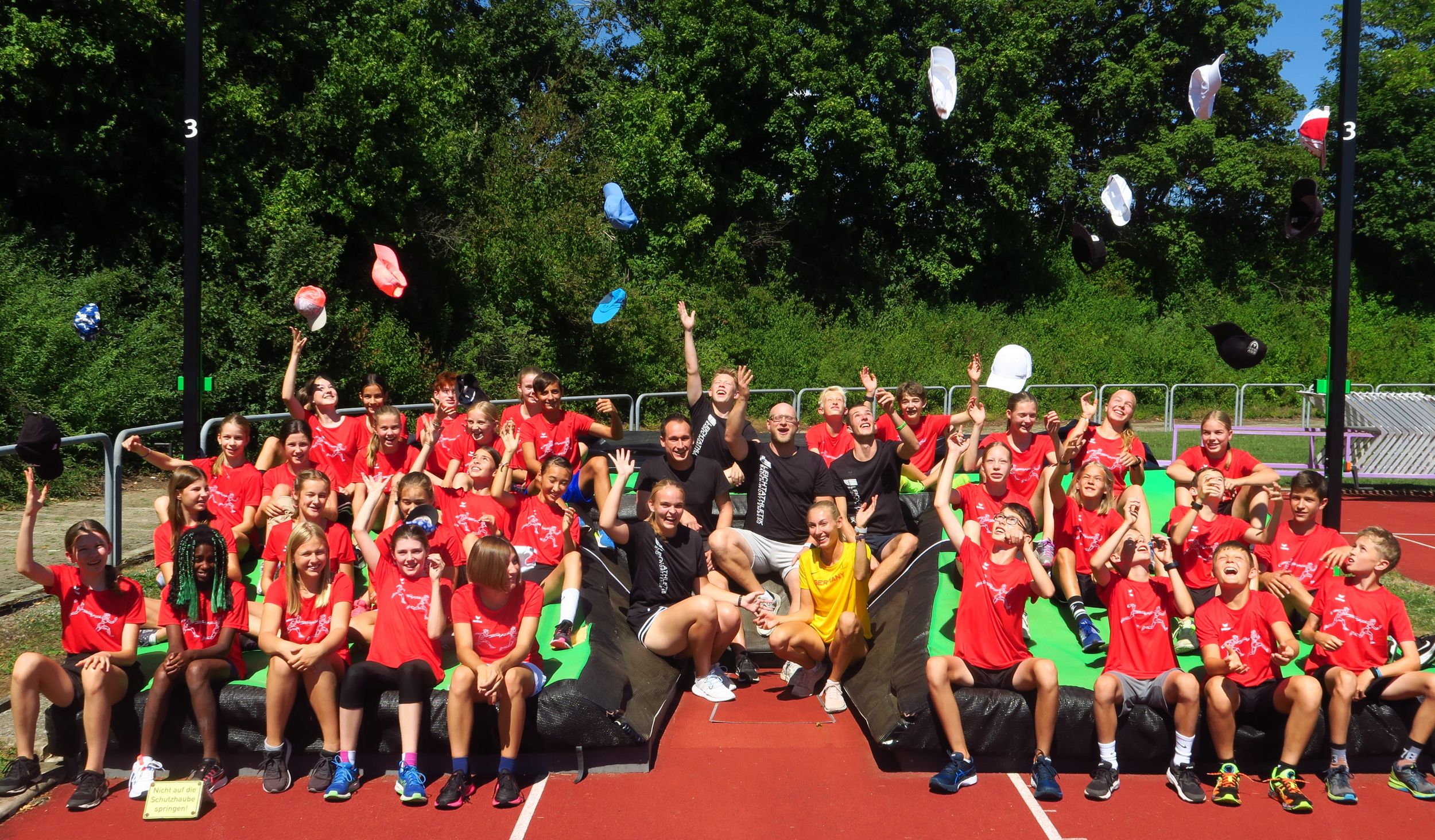 Nach der Begrüßung durch die Camp-Leiter Volker Zahn bzw. Christian Hummel konnte es im Stationenbetrieb losgehen, der in fünf Leichtathletik-Einheiten fast den ganzen Disziplin-Kanon abdeckte. Kennenlernspiele sorgten dafür, dass die Gruppen mehr Wissen über ihre Mitglieder anhäuften. Eine besondere Überraschung gab es für die Albstädter Gruppe: WM-Teilnehmerin Elisa Lechleitner – im Vorjahr noch als Betreuerin dabei – stattete dem Camp einen Besuch ab, gab Einblicke ins WM-Unternehmen und im Stadion dann auch massig Autogramme.