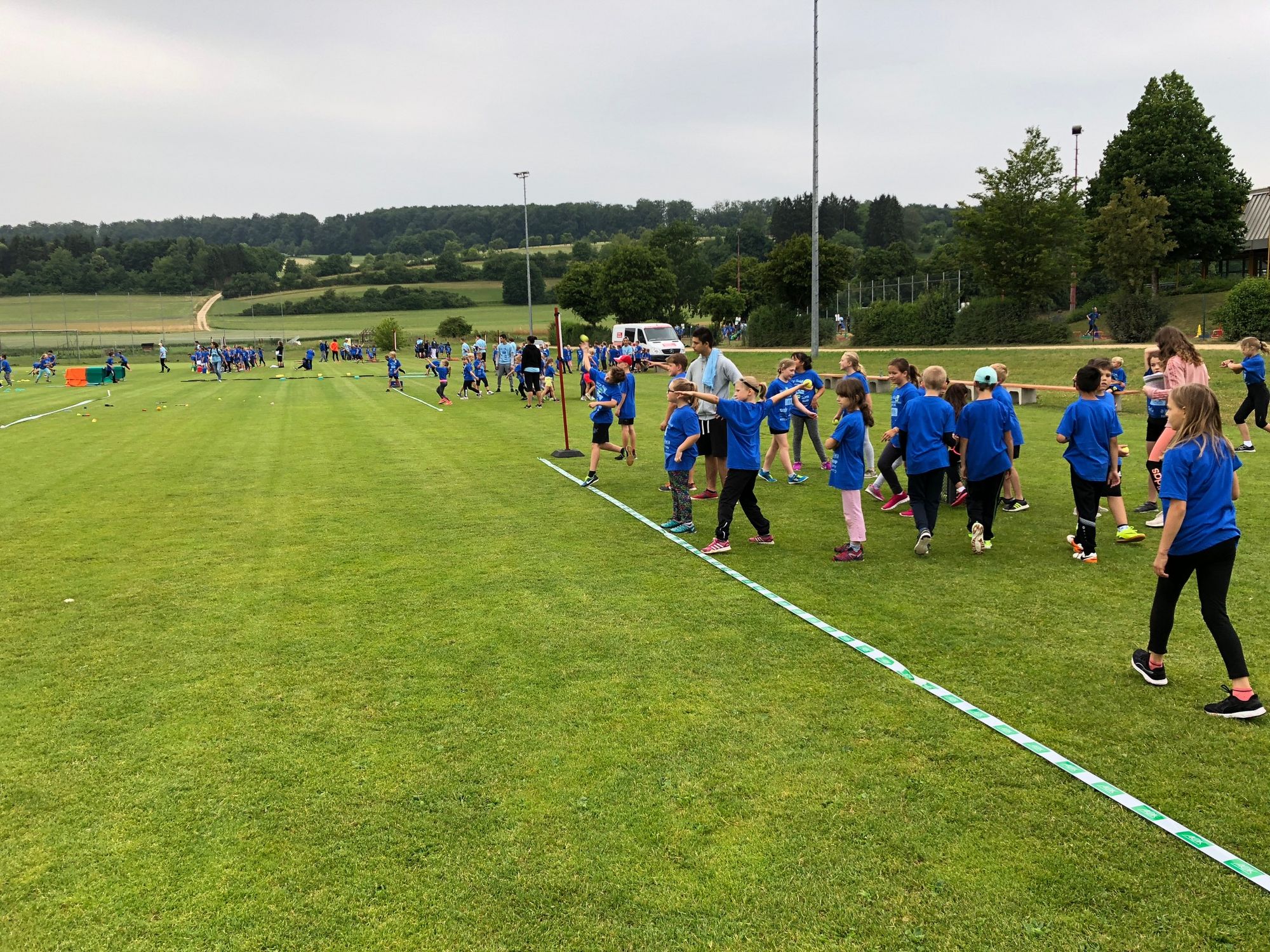 An der Station "1-2-3, dann fliegt das Ding" ist das Ziel, mit unterschiedlichen Wurfgeräten, wie zum Beispiel Tennisbällen, Wurfstäben oder Wurfheulern so weit wie möglich in Wurfzonen zu werfen. Besonders motiviert waren die Kinder nach der kurzen Wurf-Vorführung von Ex-Zehnkämpfer Rene Stauß bei der Sache. Er ließ den Wurfheuler unter tosendem Beifall über den gesamten Sportplatz fliegen und sorgte damit für viele bewundernde Blicke.