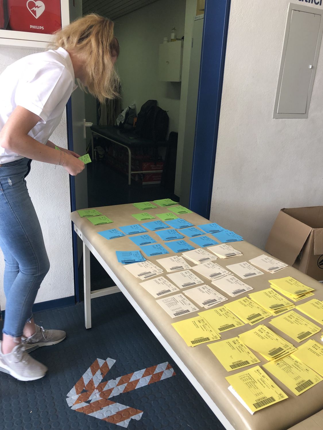 Am TIC gibt es drei Terminals zur Abholung der persönlichen Startnummer. Die ersten zwei Terminals sind alphabetisch nach Nachnamen bzw. nach der Startnummer unterteilt, das dritte Terminal steht den Vereinen für die Staffelmeldung zur Verfügung. Die Athlet:innen stellen sich am für sie zuständigen Terminal an. Um mündige Athlet:innen zu fördern, bitten wir ausdrücklich darum, dass diese Aufgabe von den Athlet:innen persönlich erledigt wird! Die Trainer:innen kümmern sich ggf. um die Bestätigung der Staffelmeldungen.
