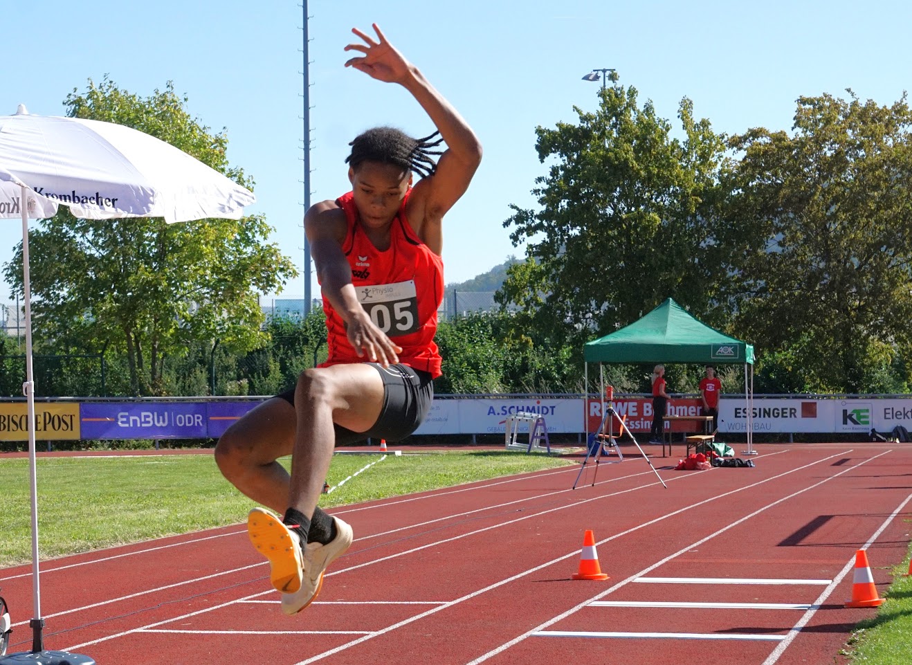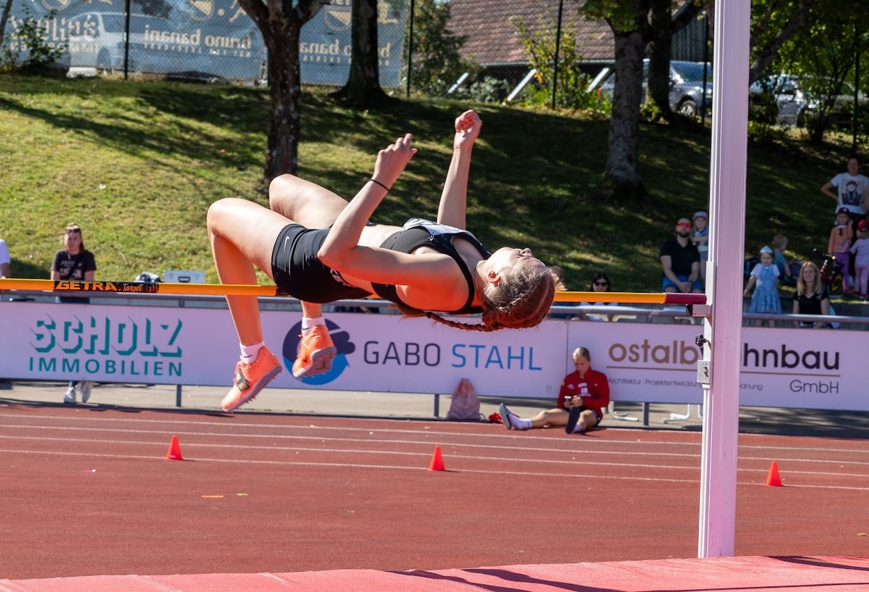 Und der wusste die Top-Bedingungen mit tollem Spätsommerwetter zu nutzen: Lokalmatador Justin Hopfensitz (TSV Oberkochen) steigerte sich bei seinem Dreisprungsieg um über einen Meter auf 13,34 Meter und rückte ebenso in die DLV-Top 3 auf wie Sina Stoll (TB Tailfingen), die den Hochsprung mit 1,70 Meter für sich entschied. Im Weitsprung verbesserte sich die ein Jahr jüngere Teresie Hess (SG Schorndorf 1846) auf 5,58 Meter und holte sich souverän den Sieg. Das gelang auch der deutschen Meisterin Mara Dümmler (VfL Sindelfingen), die nach übersprungenen 3,30 Meter gleich aufs Ganze ging und erst an der neuen deutschen Jahresbestleistung von 3,60 Meter scheiterte. Ebenfalls zwei Sprungsiege holten sich die Jungs: Hannes Klecker (SSV Ulm 1846) dominierte den Weitsprung mit 6,30 Meter, Henri Massing (MTV Stuttgart) lag im Hochsprung mit 1,82 Meter vorn. Während die Württemberger in den technischen Disziplinen überall vorn mitspielten, gelang das im Sprint und Lauf kaum. Lediglich mit Hürden gelangen zwei Erfolge: Luke Schmidt (SpVgg Holzgerlingen) holte sich in 11,30 Sekunden die Kurz-, Nina Sippel (LG Neckar-Enz) in 47,55 Sekunden die Langhürden. Sehr gut schlug sich die erstmals gelaufene 4x 800 Meter-Mixed-Staffel, die den stimmungsvollen Abschluss bildete: Nachdem Pitt Wanninger als Schlussläufer noch mal zu Bayern aufgeschlossen hatte, hatten die Weißblauen aber auch hier die Nase vorn.